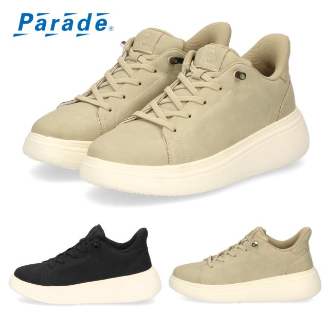 スニーカー レディース ゴム紐 シューズ 靴 ローカット きれいめ 厚底 黒 ブラック ベージュ 楽すぽ Parade 991702 パレード