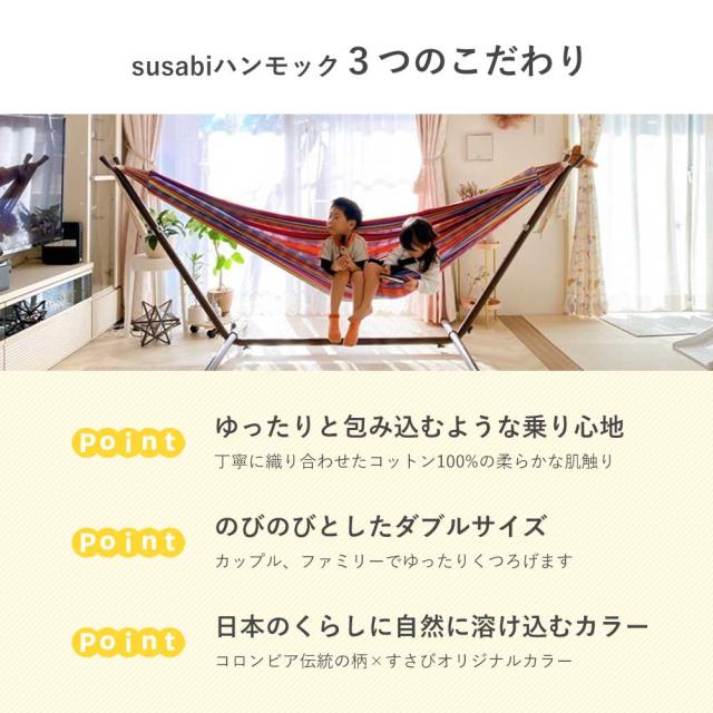 ハンモック ダブルサイズ 専用スタンドセット 自立式 スタンド コロンビア製 室内 リビング アウトドア susabi すさび SBCO-HMDB-SET-BR-SUNSET