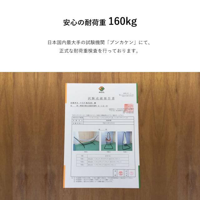 | 耐荷重 | 【ハンモック】160kg 【スタンド】200kg |