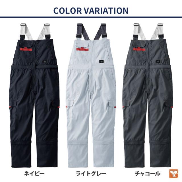 6023 ヤマタカ 機能充実サロペット!裾が着脱式なので、現場に合わせて丈を調節できます。