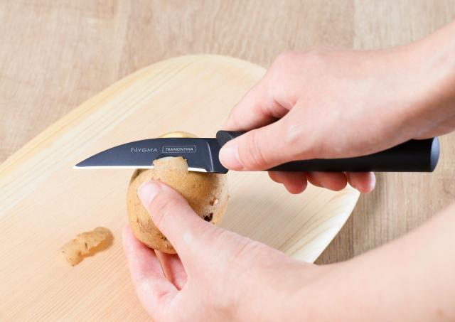 果物や野菜の皮むきに最適なピーリングナイフです。刃渡り7.6cmと短めで、小回りが利くコンパクトサイズです。ちょっとだけ切りたい時にもさっと取り出して使えます。