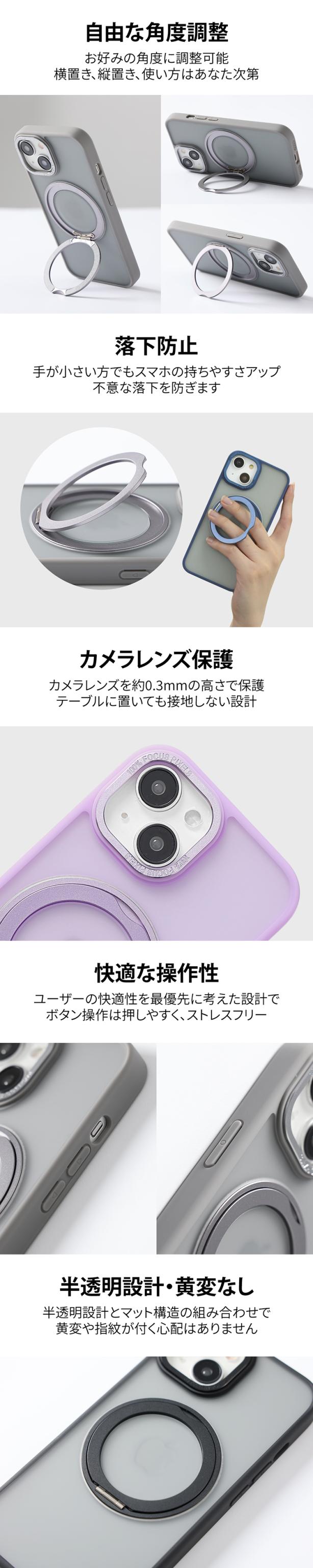 - MagSafe対応リングが付いてるので少々厚みが増しますが、ケースは割としっかり硬めなので安心出来ます。 ツルツルというかサラサラというか触り心地がいいのはいいんですが、スマホホルダーに挟むと滑ってし...