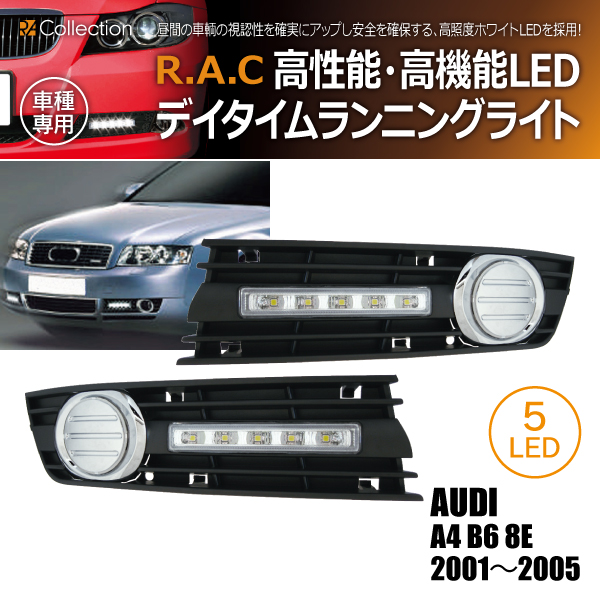【在庫限】アウディ A4 B6 8E セダン/アバント 2001-2005 R.A.C エアインテイク付 LED デイライト(商品コード:500326)