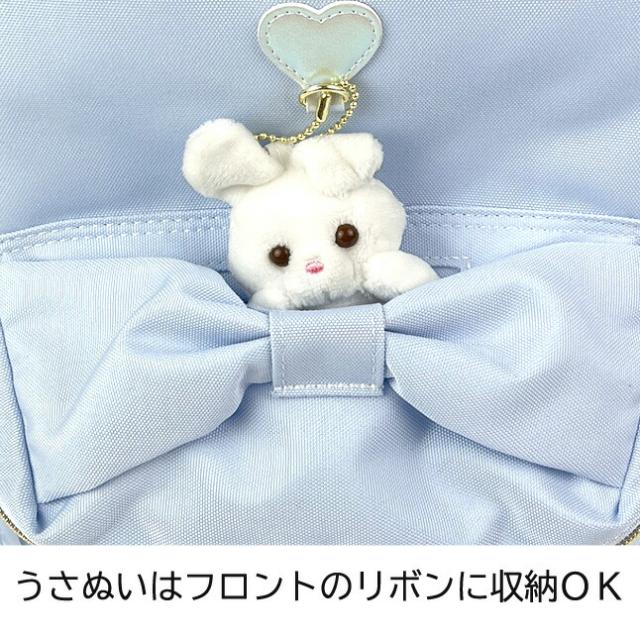 うさぎのやわらかマスコット付きリュックサック。
