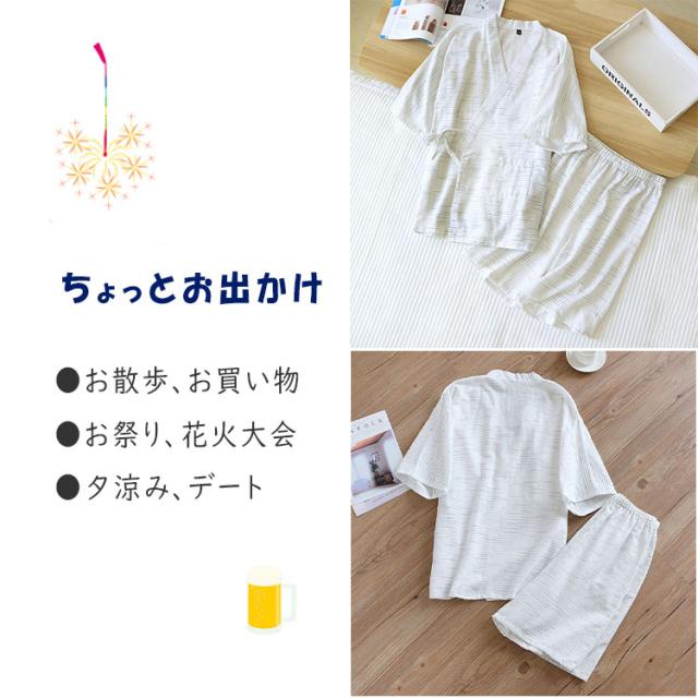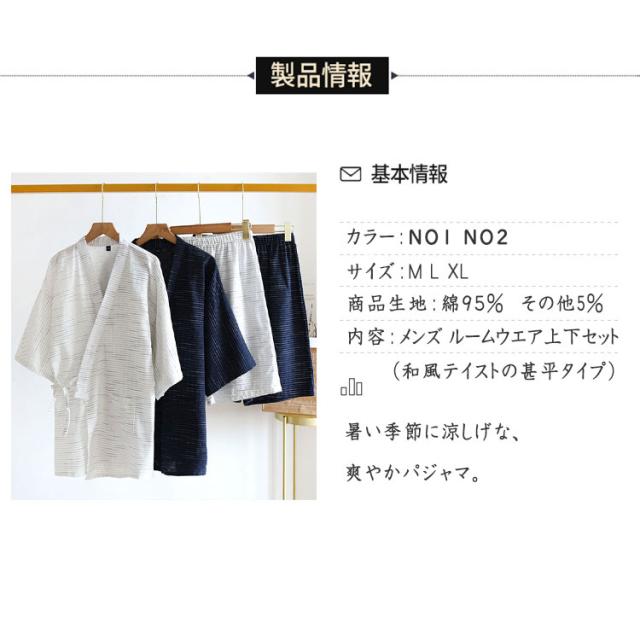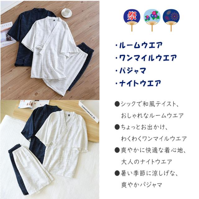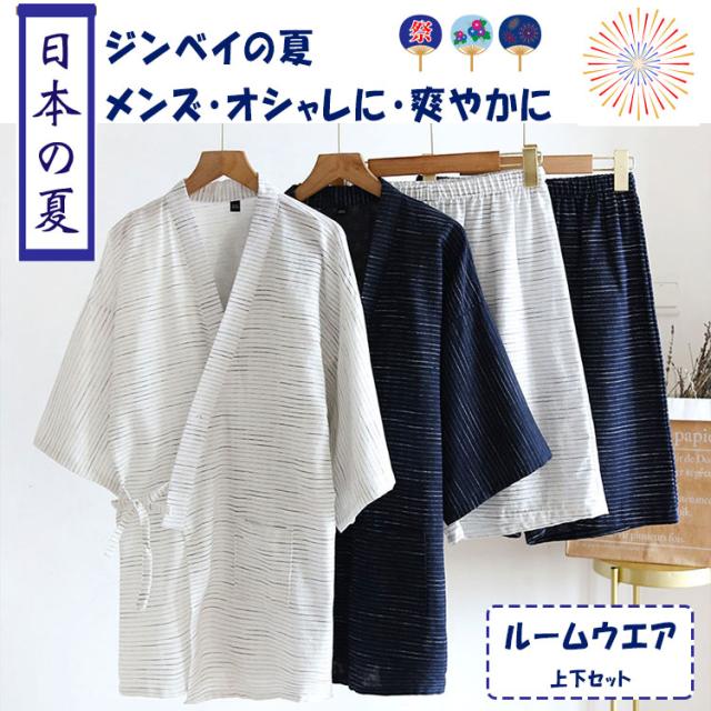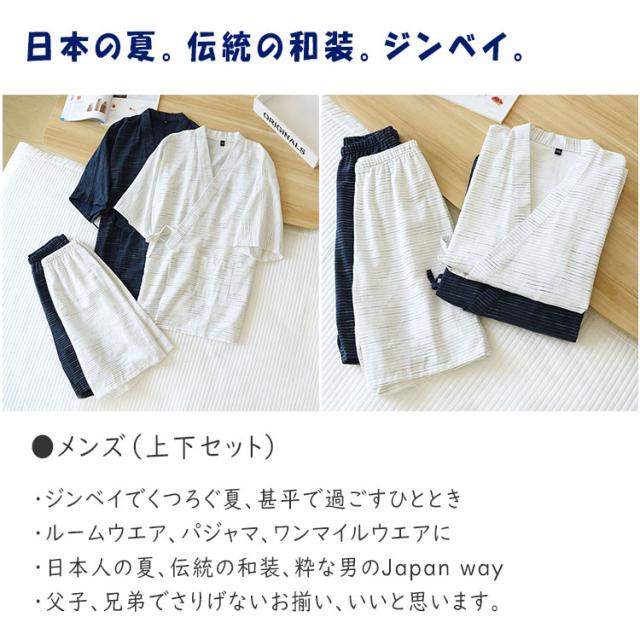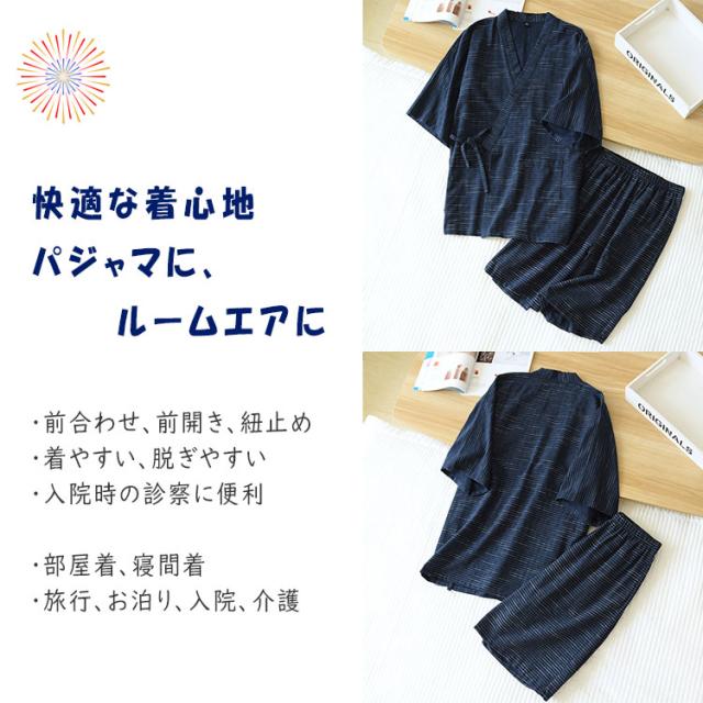 甚平 ルームウエア 上下点セット ジンベイ パジャマ メンズ 甚平 ジンベイパジャマ 甚平ルームウエア メンズパジャマ ワンマイルウエア ナイトウエア 普段着 半ズボン 薄手 夏 通気性 優しい着心地 浴衣 前合わせ 前開き 部屋着 寝巻き ねまき