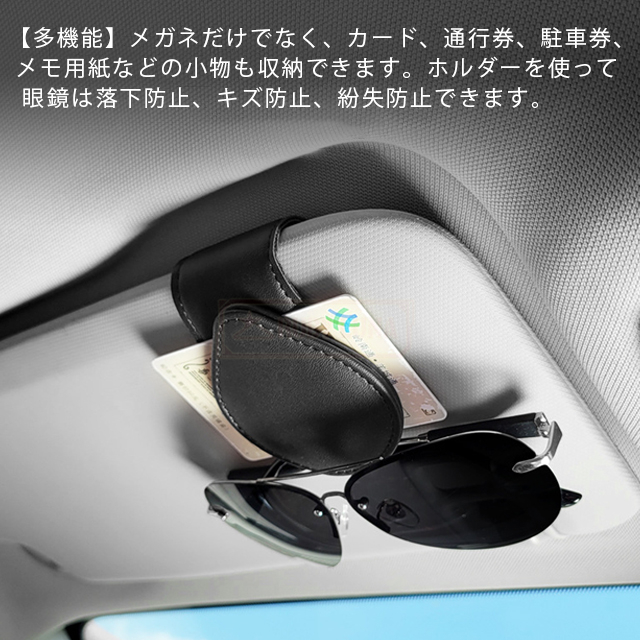 | 【多機能】 | ◆メガネだけでなく、カード、通行券、駐車券、メモ用紙などの小物も収納できます。ホルダーを使って眼鏡は落下防止、キズ防止、紛失防止できます。 |