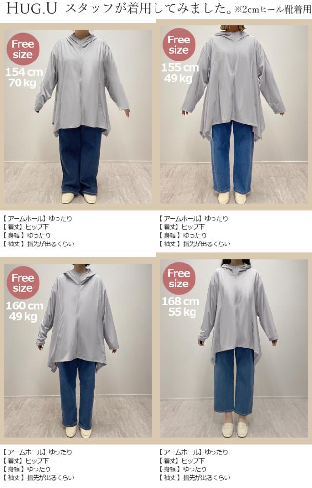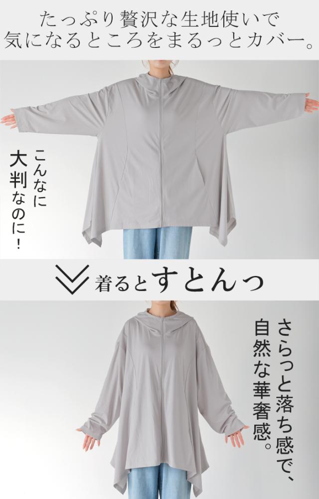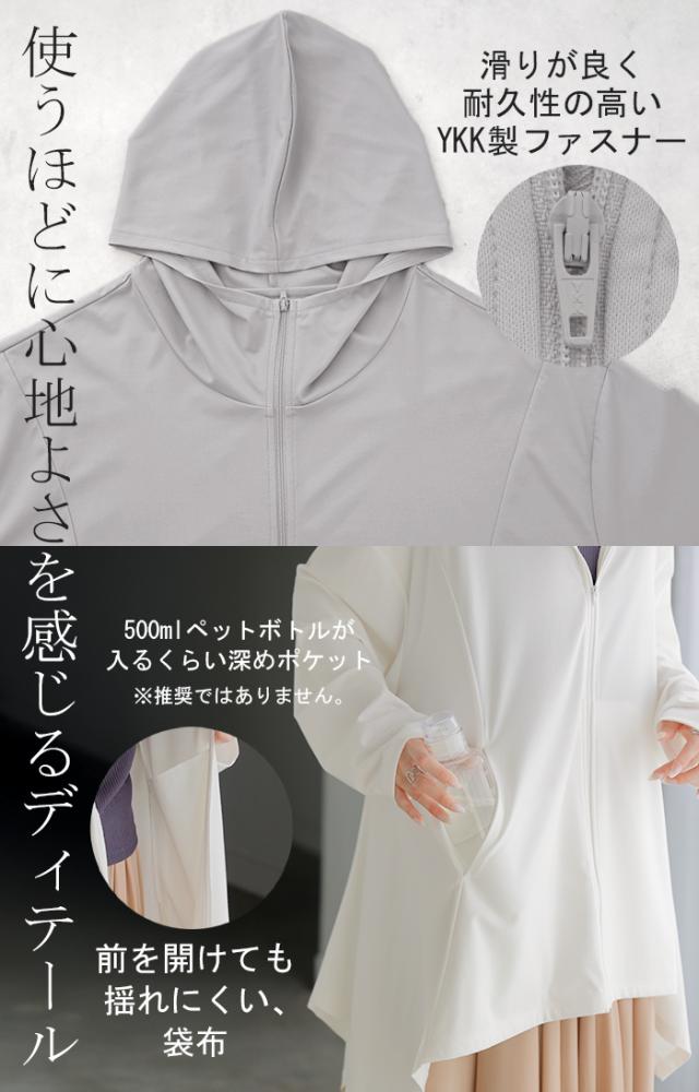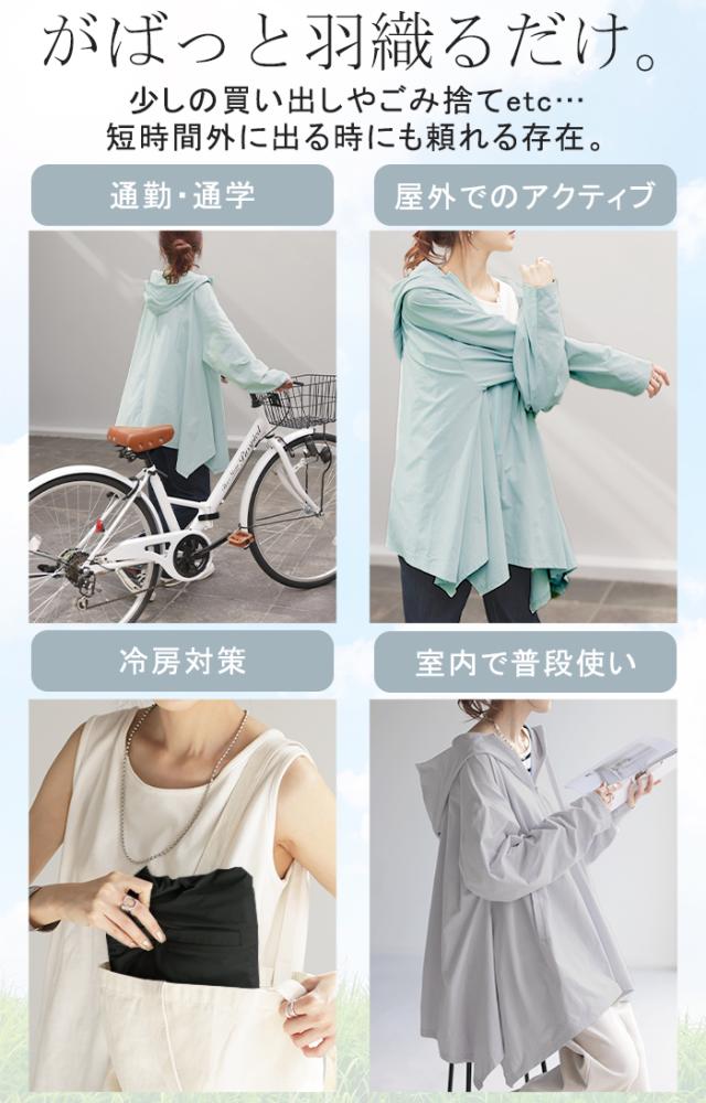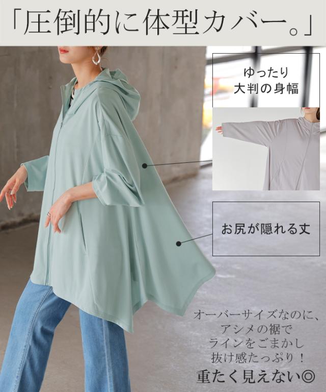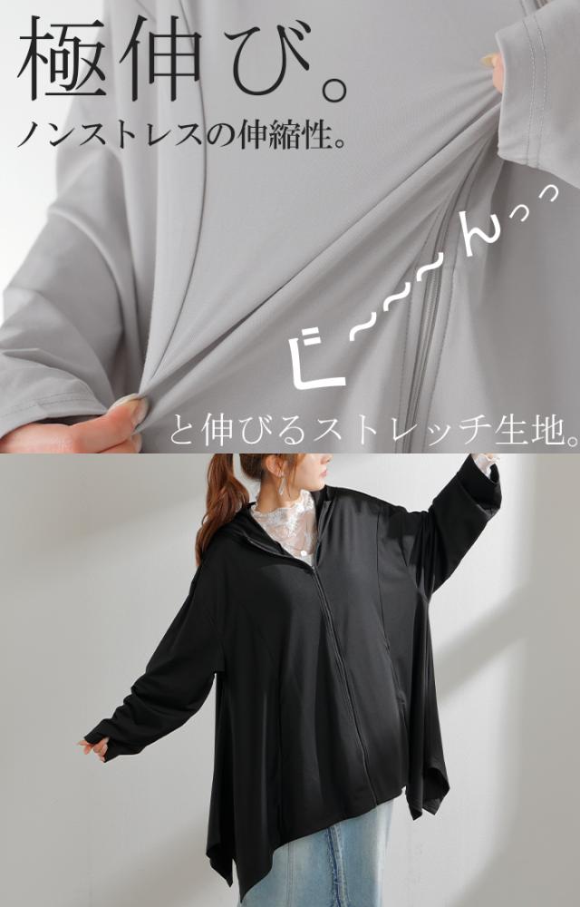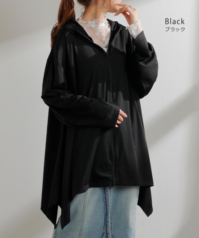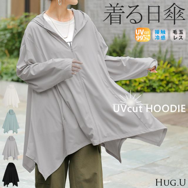 パーカー 接触冷感 UVカット 変形 カーディガン カーデ ポンチョ 薄手 レディース トップス チュニック 紫外線対策 海 自転車 アウトドア ロング 長袖 ケープ フーディー ライトアウター 長い お尻が隠れる 体型カバー 大きいサイズ 黒 春 夏 HUG.U 秋新作
