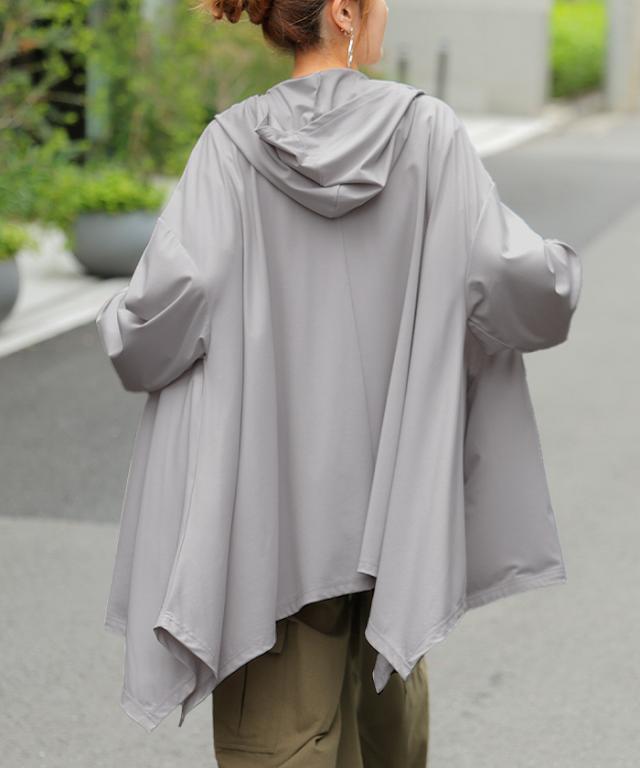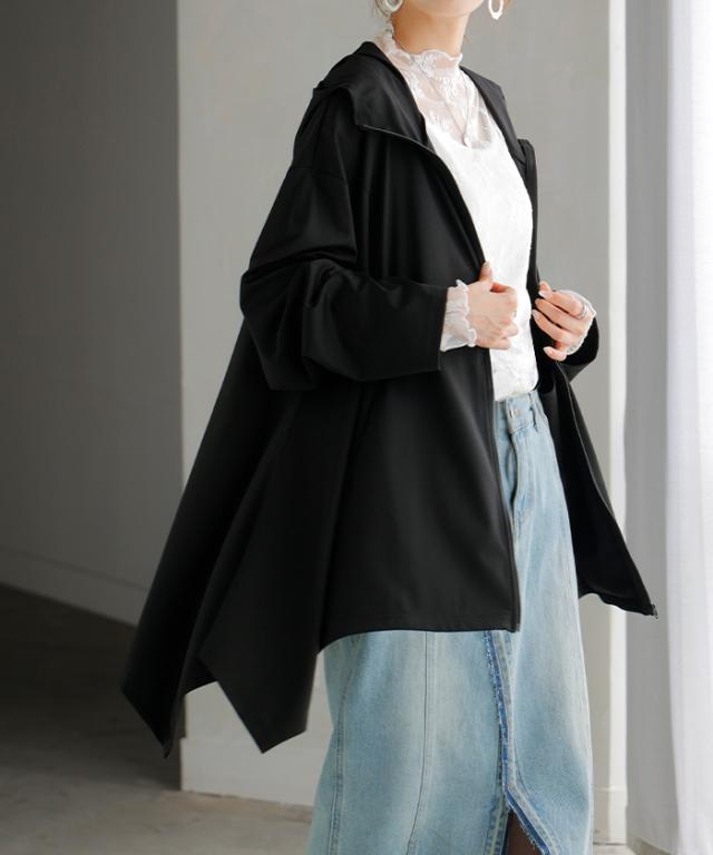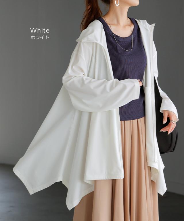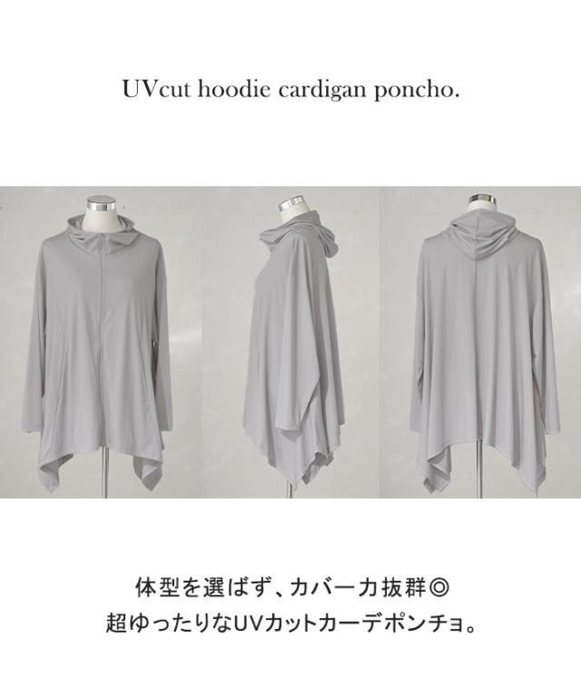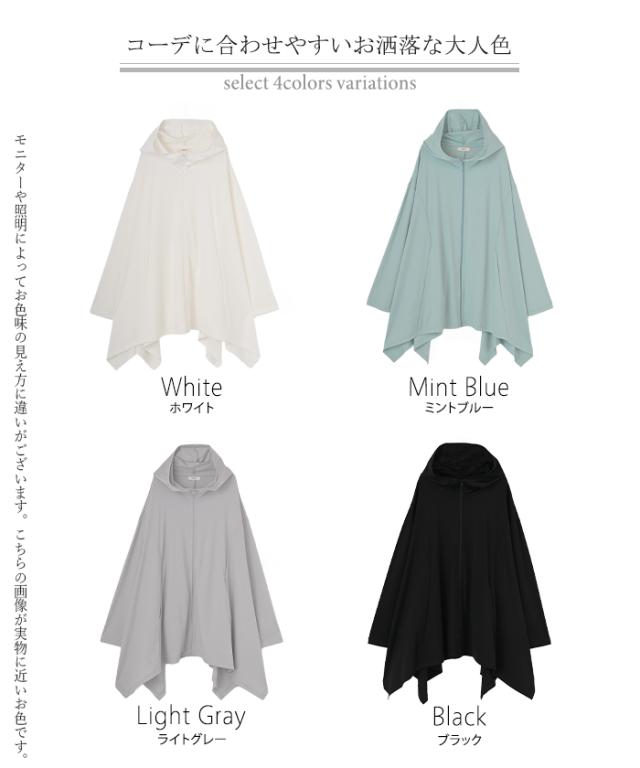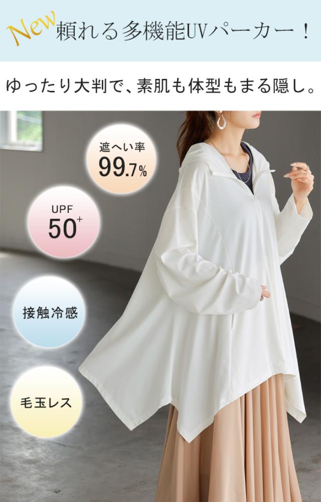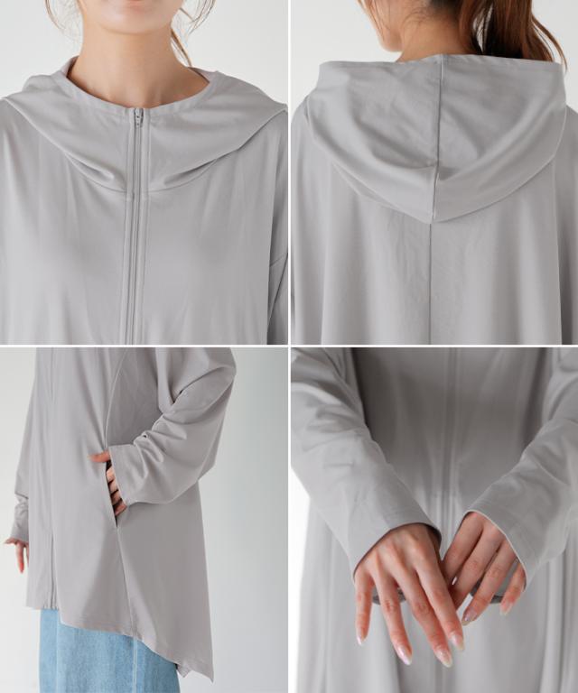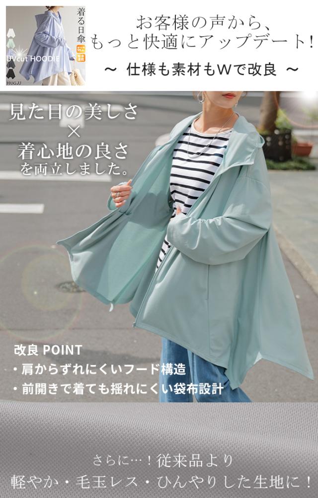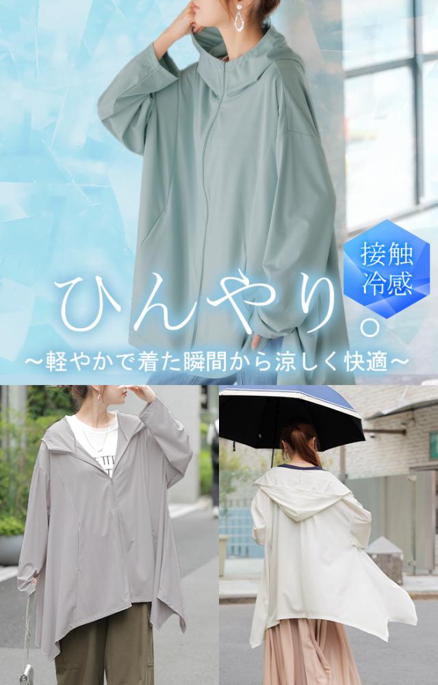 パーカー 接触冷感 UVカット 変形 カーディガン カーデ ポンチョ 薄手 レディース トップス チュニック 紫外線対策 海 自転車 アウトドア ロング 長袖 ケープ フーディー ライトアウター 長い お尻が隠れる 体型カバー 大きいサイズ 黒 春 夏 HUG.U 秋新作