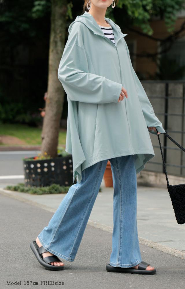 ロング丈でヒップラインもカバーしてくれる薄手UVパーカーです。