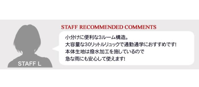 通勤通学におすすめの容量30Lサイズ。