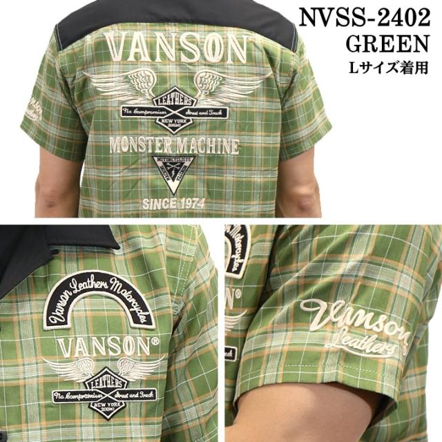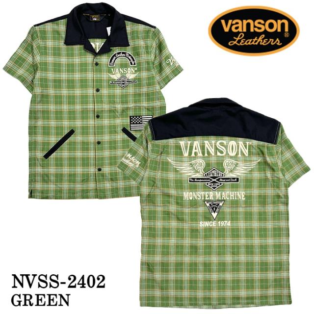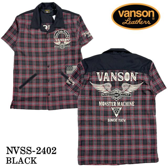 VANSON バンソン 開襟チェックシャツ 半袖シャツ nvss-2402