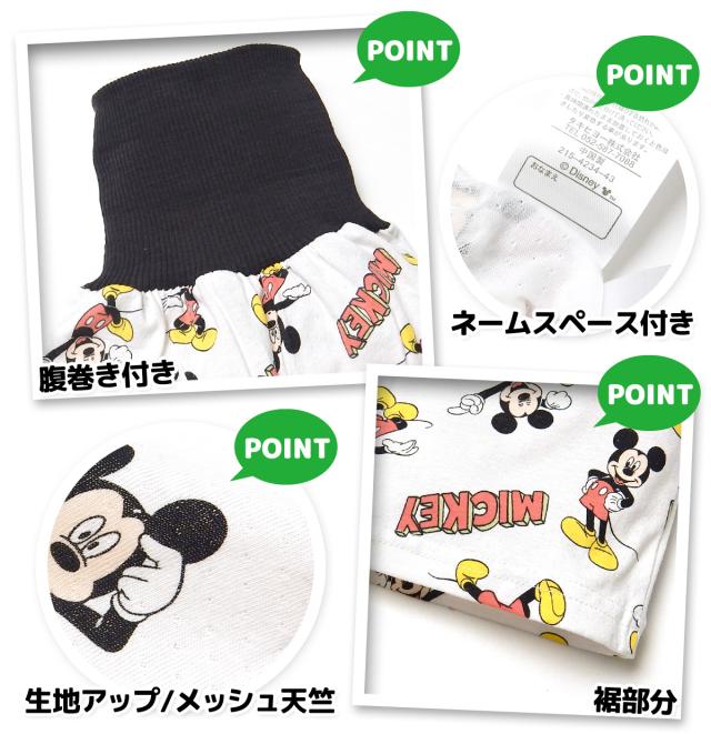 【送料無料】男児 ベビー 腹巻き付き ステテコ Disney ディズニー ミッキーマウス メッシュ天竺 本体綿100% ボトムス ベビー服 男の子 80cm 90cm 95cm iw-1129b-bk【メール便対応】