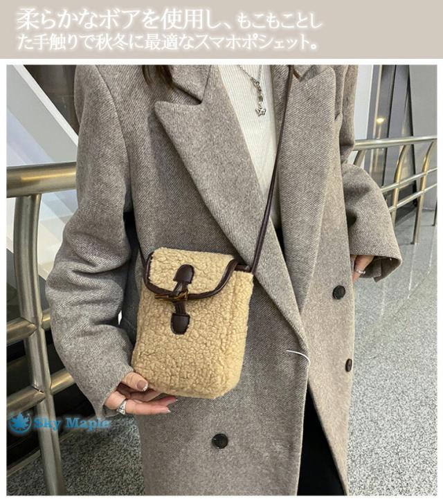 ポシェット 肩掛け 斜め掛け ミニショルダー 小物入れ おすすめ ギフト ボアポーチ 可愛い スマホポーチ スマホショルダー レディース コンパクト お財布ショルダー お財布 縦型 財布 おしゃれ かわいい ミニ ポーチ ショルダーバッグ ホーンバックル 韓国 ファッション 女子
