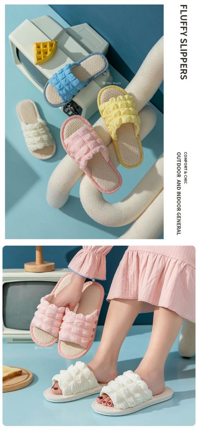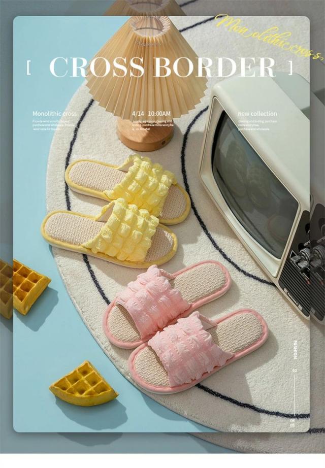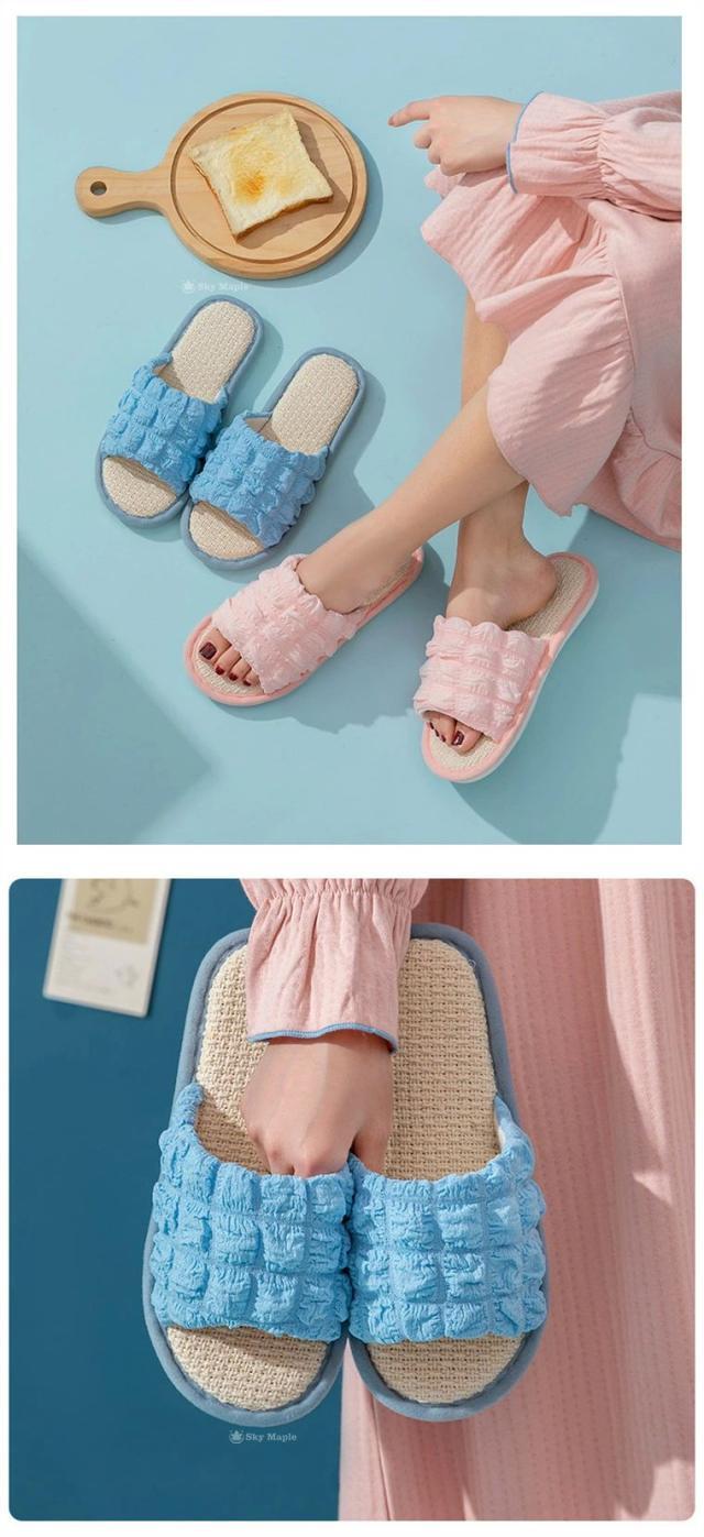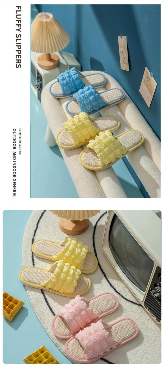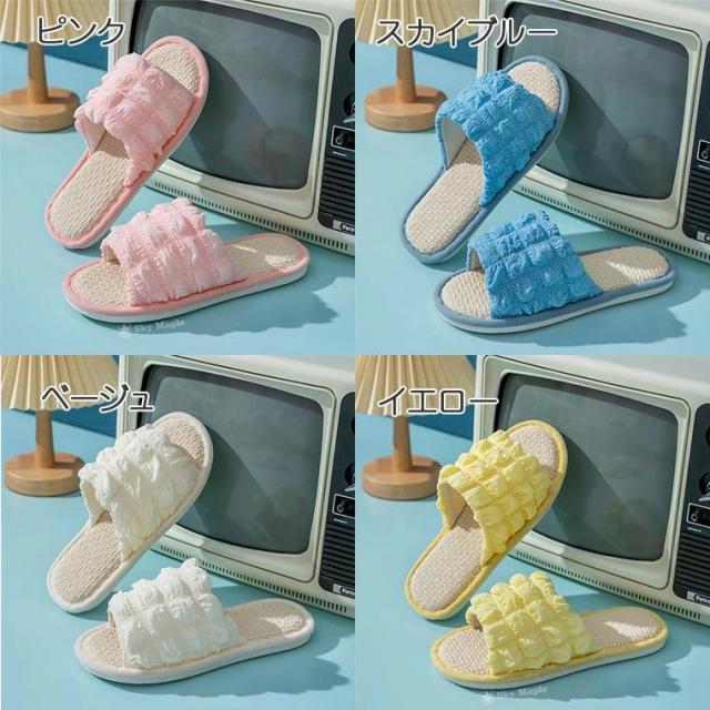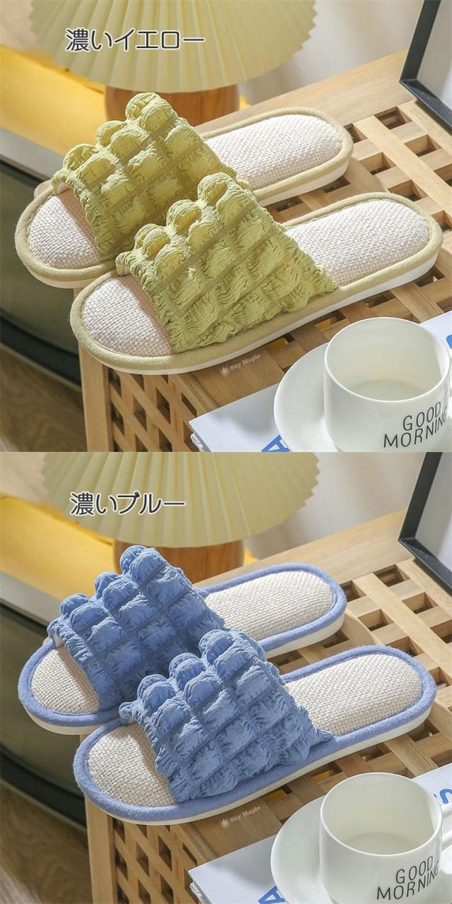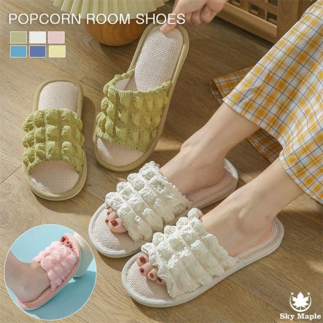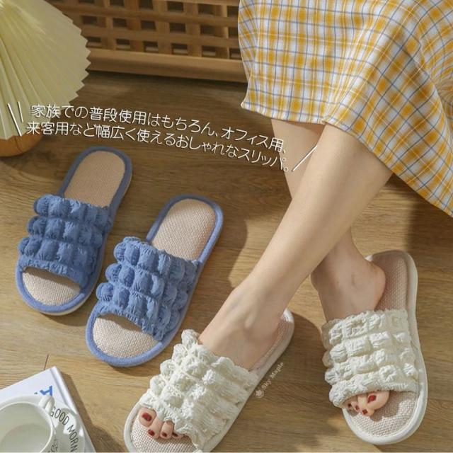 ポップコーン 生地 布 ポップコーン生地 ポコポコ ワッフル おしゃれ 可愛い スリッパ サンダル 室内 綿麻スリッパ ルームシューズ レディース 1.5cm 静音 滑りにくい ルームスリッパ 秋 夏用 来客用 オールシーズン 綿麻 快適 蒸れにくい 通気性よい 軽量 母の日