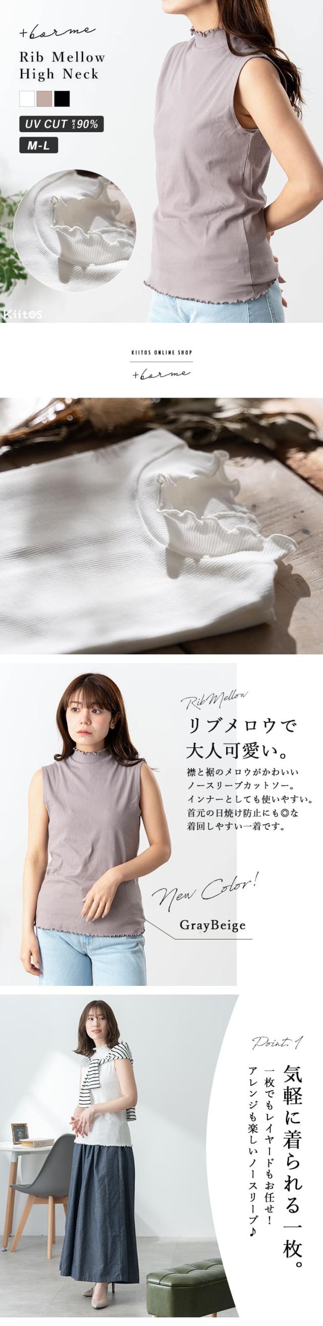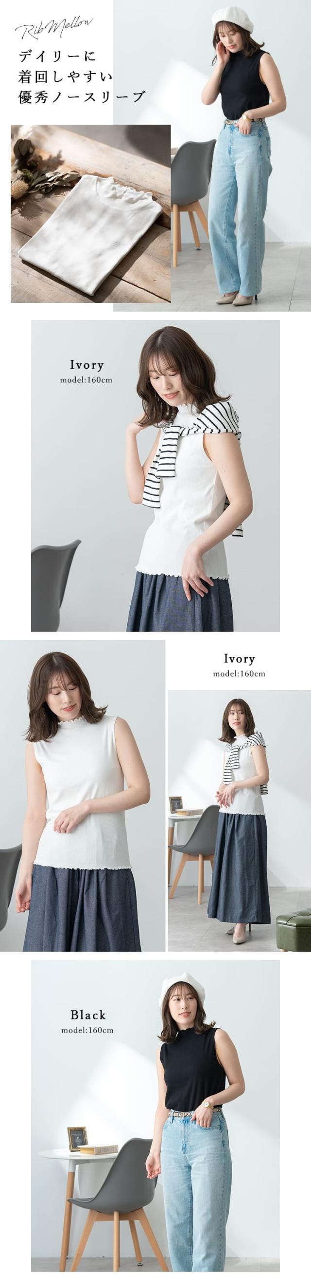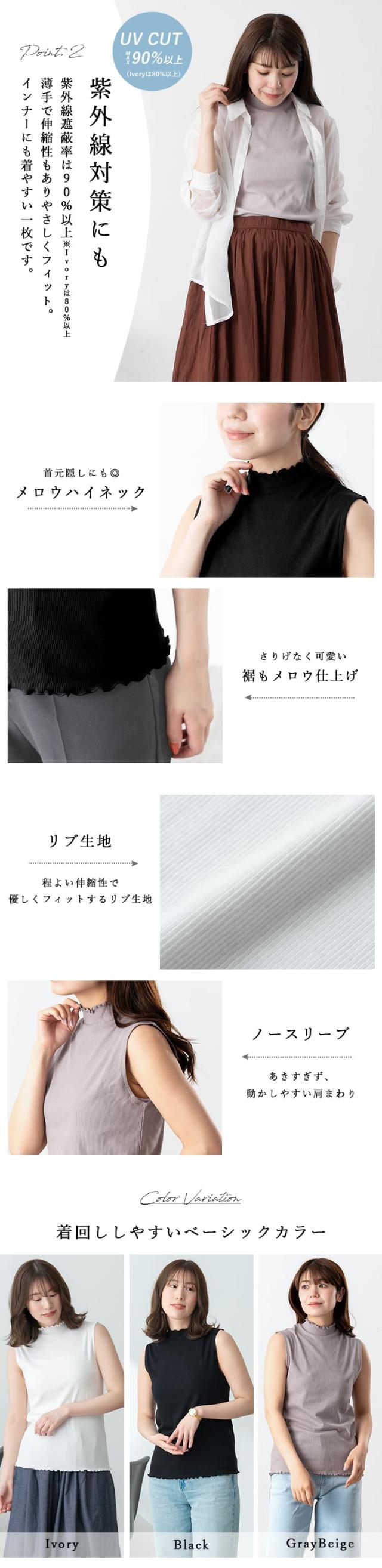 カットソー レディース インナー tシャツ ノースリーブ リブ メロー ハイネック タートルネック タンクトップ 重ね着 レイヤード 春 夏 無地 コットン 綿