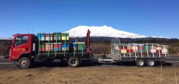 モソップ社のトラックとトレーラー(後ろに見えるのはルアペフ山)