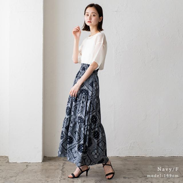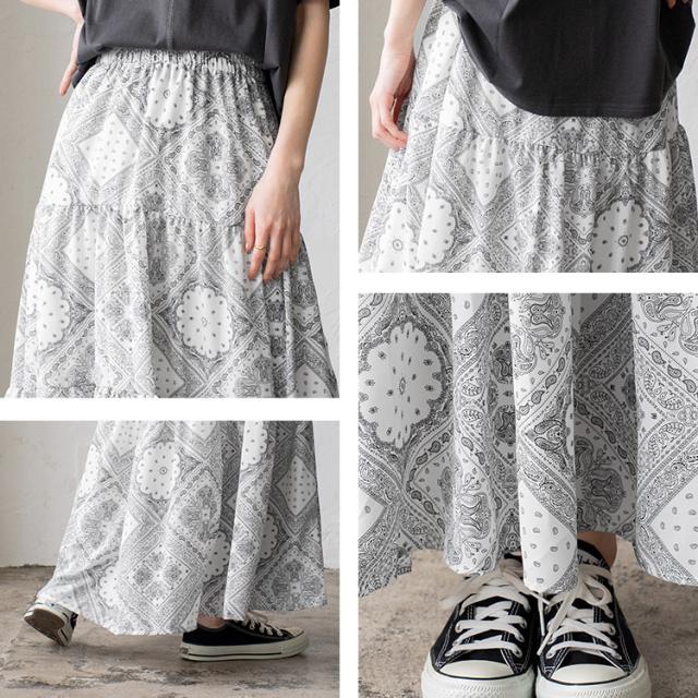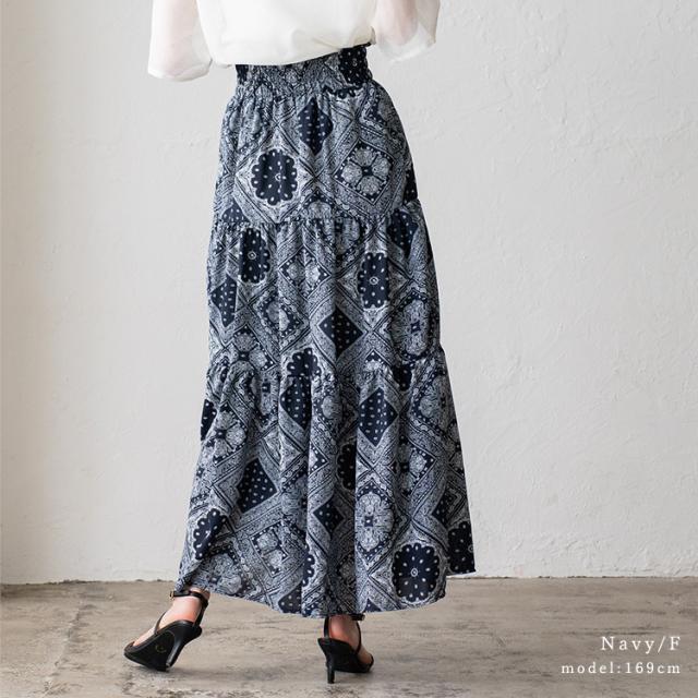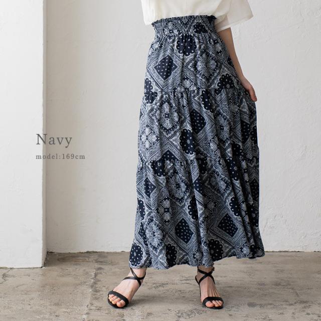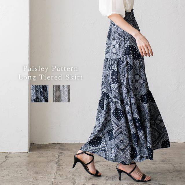 sale ティアードスカート ロング レディース マキシ丈 ギャザー ペイズリー柄 ロング スカート ウエストゴム きれいめ スカート シンプル フレア おしゃれ 大人可愛い 裏地付き カジュアル キレイめ 楽ちん リラックス 高身長 春 夏【メール便】 vkkc-0371 新生活