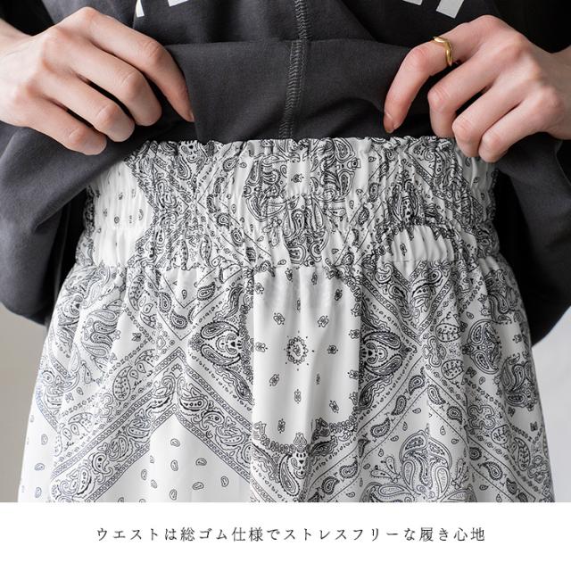存在感のあるペイズリー柄が大人かわいいロングスカート。