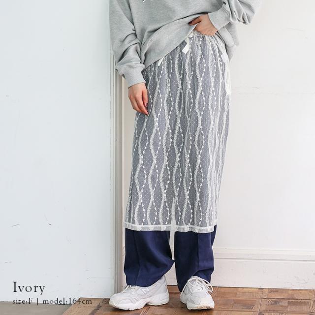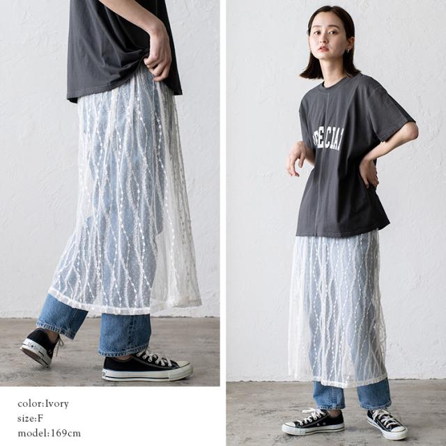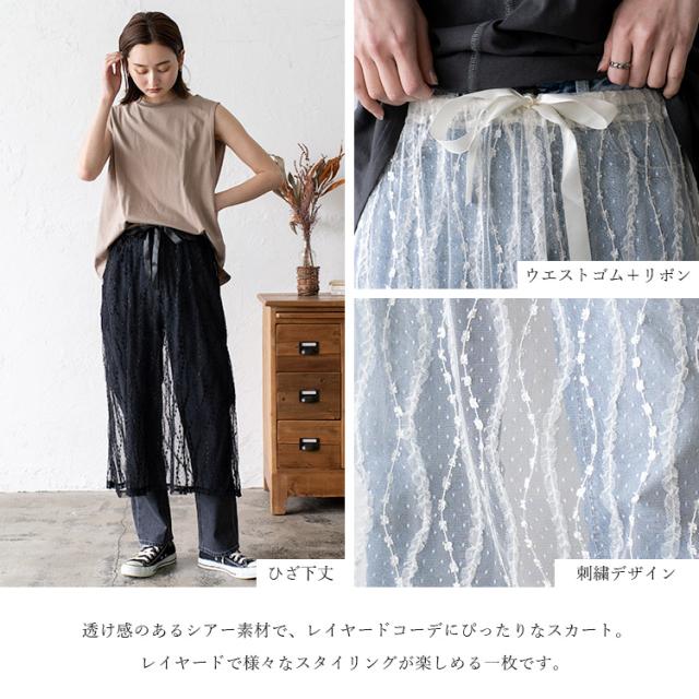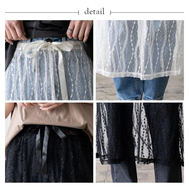 チュールスカート スカート ロング レディース シースルー レイヤード 刺繍 ラップスカート フリル 透け感 シアー おしゃれ 大人可愛い 膝下 ミモレ丈 ウエストリボン 調整可能 カジュアル きれいめ 高身長 白 黒 春 夏【メール便】 vkkc-0384新生活