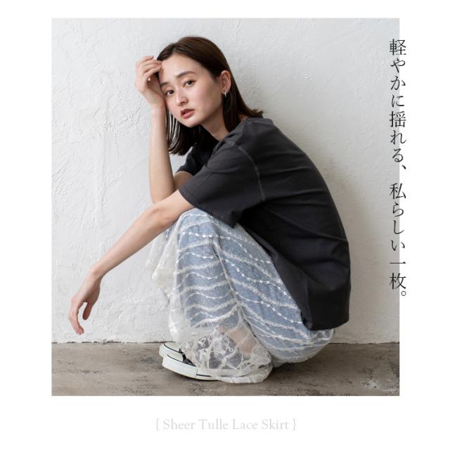 チュール特有の透け感のあるシアー素材なので、軽やかに可愛らしく着用できます。