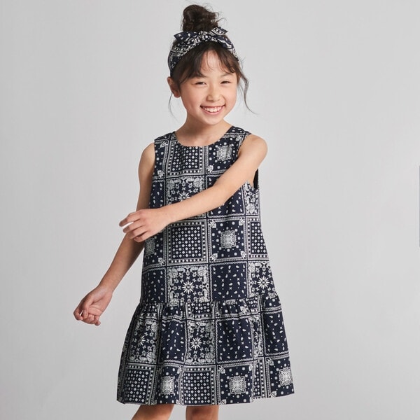 【リバーシブル】ギンガムチェック・バンダナ柄プリント ワンピース