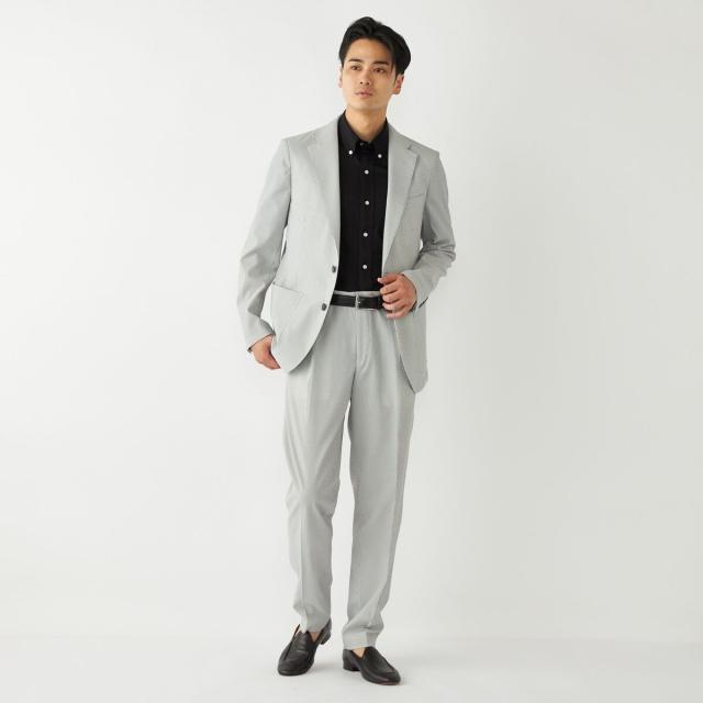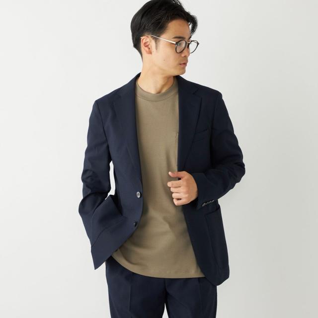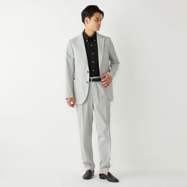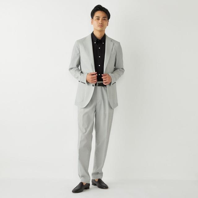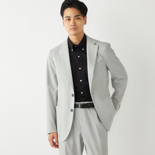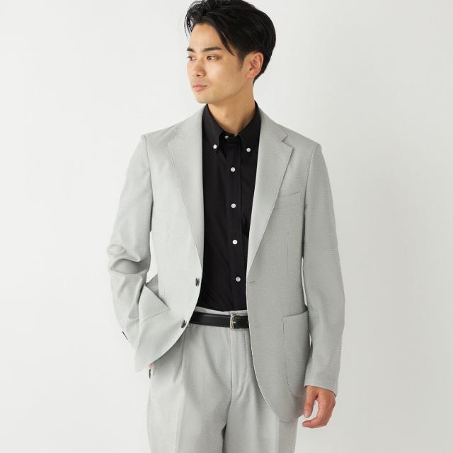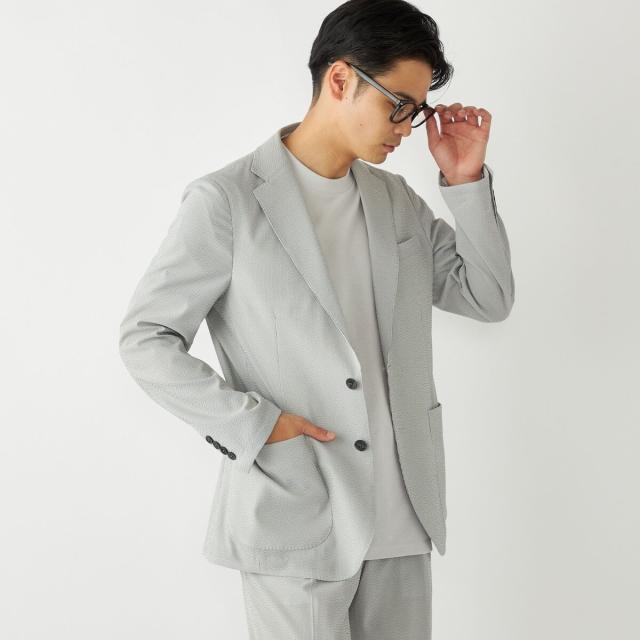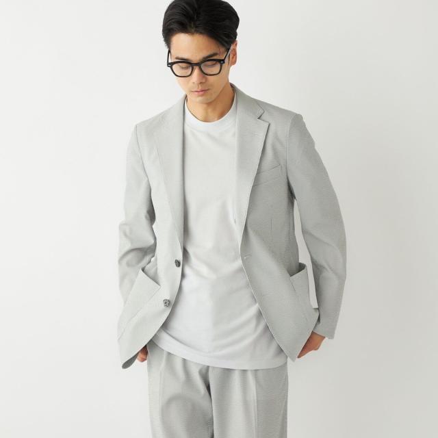 CLEAR EFFECT(R)という撥水・撥油加工を施したシアサッカー素材のテーラードジャケット。