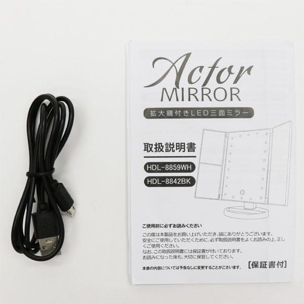 HIRO アクターミラー 拡大鏡付きLED三面ミラー ホワイト LED22個搭載 角度調整可 忙しい朝のメイクをサポート HDL-8859 ヒロコーポレーション HIRO CORPORATION ヒロ・コーポレーション ハリウッドミラー 鏡 かがみ ミラー MIRROR ライト付きミラー ランプ付きミラー 三面鏡 三面ミラー 三面 3面 拡大鏡 化粧ミラー 化粧鏡 メイクミラー メイク鏡 卓上鏡 卓上ミラー 卓上 机 テーブル ドレッサー スタンドミラー 化粧 メイク メイクアップ マスカラ 便利 女優ライト ミラーライト メイクアップライト 女優 アクター 角度 調整 調節 調光 2倍 3倍 拡大 アップ 点灯 灯り 照明 LED LEDライト ライト ランプ 光る USB 乾電池 電池 22連 22灯 22発 22個 白 WHITE HDL8859 HDL 8859 HDL-8859WH