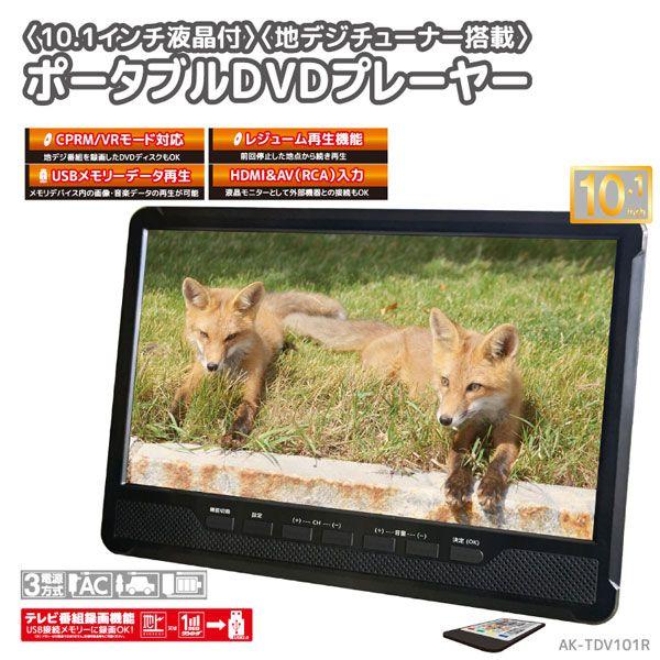 HIRO ポータブルDVDプレーヤー 10.1インチ 地デジチューナー搭載 録画機能付き AK-TDV101R ヒロコーポレーション HIRO CORPORATION ヒロ・コーポレーション DVDプレーヤー DVDプレイヤー DVD CD ポータブル サブモニター テレビ TV 地デジ 地上デジタル フルセグ ワンセグ 自動切替 テレビ視聴 TV視聴 映画 ドラマ スポーツ 音楽 録画 再生 3電源 レジューム再生 USB 10.1inch 10.1型 車 車載 移動 持ち運び 外出先 旅行 ドライブ 出張 学習 勉強
