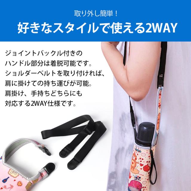 取っ手付きなので収納時にも便利です。水筒カバー ペットボトルカバー ショルダーベルト付き 1個 単品 保温 保冷 ショルダー 肩掛け 手持ち 2WAY 600ml 対応 水筒 ホルダー 子供 女の子 男の子 持ち運び おしゃれ ボトルカバー 直径7cm アウトドア 大人 子ども