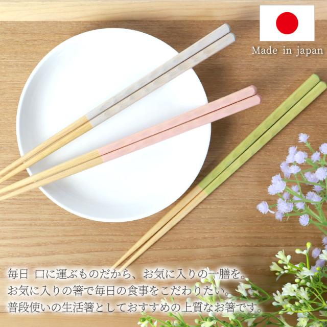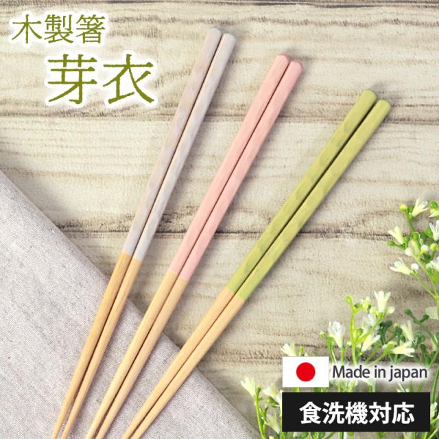 箸 食洗機対応 23cm 芽衣 木製 お箸 かわいい くすみカラー パステルカラー 日本製 国産 おはし おしゃれ すべり止め 滑らない グレー ピンク グリーン 贈り物 ギフト プレゼント 結婚祝い 可愛い