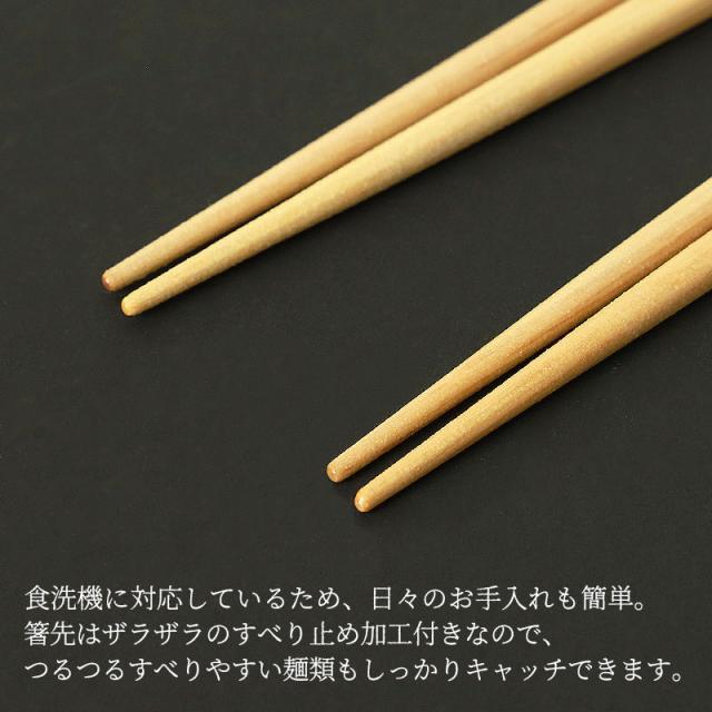 箸先はザラザラのすべり止め加工付きなので、つるつるすべりやすい麺類もしっかりキャッチできます。