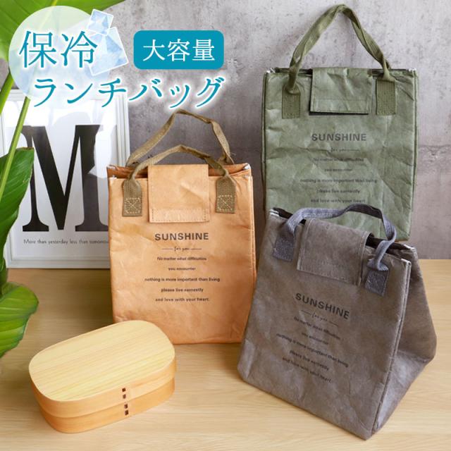 ランチバッグ 保冷 保温 バッグ 巾着バッグ クラフト調 レザー調 巾着袋 大容量 おしゃれ お弁当 お弁当袋 保温 お弁当入れ マチ 広い ミニトート 保冷バッグ かわいい 男子 女子 遠足 ピクニック 新生活 ブラウン グリーン グレー