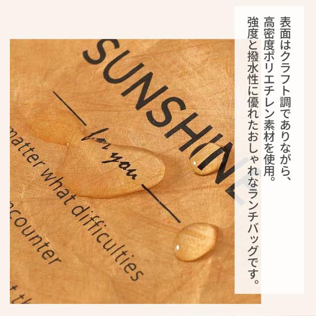 ランチバッグの表面は高密度ポリエチレン素材を使用し、クラフト調のおしゃれな見た目ながら強度と撥水性に優れた素材です。