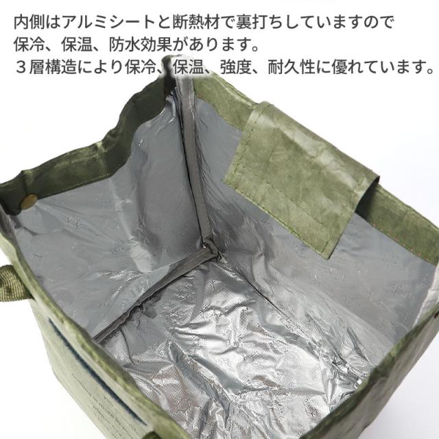 内側にはアルミシートと断熱材で裏打ちしていますので保冷、保温、防水効果があります。