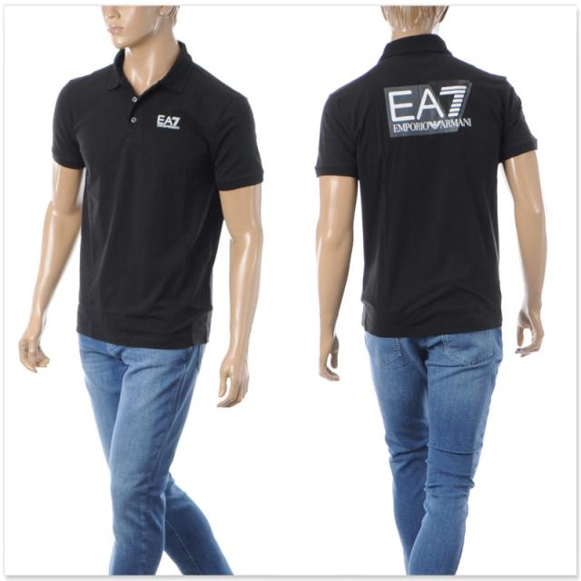 エンポリオアルマーニ EA7 EMPORIO ARMANI ポロシャツ メンズ 半袖 3DPF16 PJ03Z ブラック ブランド ロゴ プリント コットン カジュアル スポーティ シンプル おしゃれ 人気 送料無料
