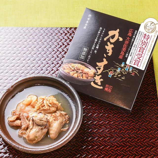 【原材料】かき(広島県産)、玉ねぎ、エノキ、オリーブオイル、麩、還元水あめ、食用なたね油、青ネギ、調味料(醤油、砂糖、みりん、かつお削り節、清酒、(一部に小麦・大豆・牛肉を含む))
