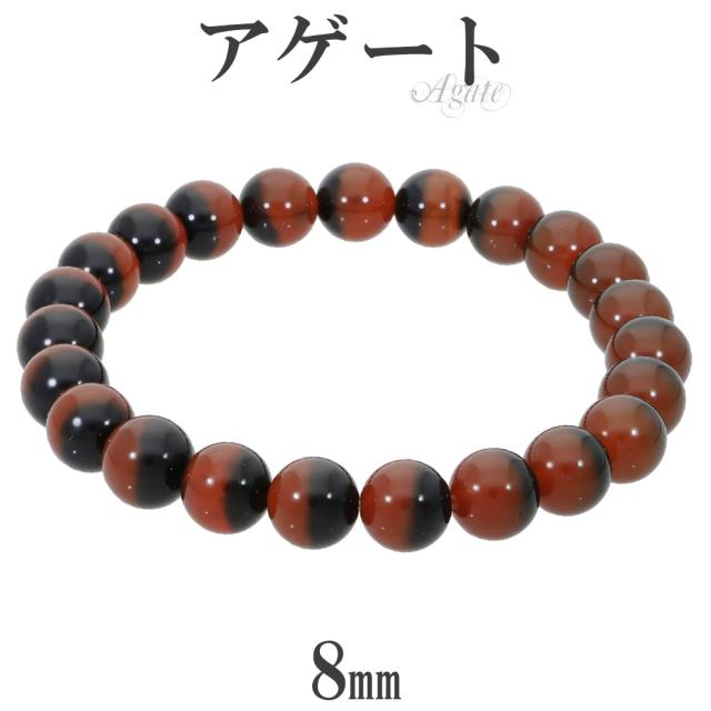 アゲート ブレスレット バイカラー 8mm 17.5cm メンズ M レディース L サイズ 天然石 パワーストーン メノウ めのう 瑪瑙 数珠 腕輪 ブレス 男性 女性