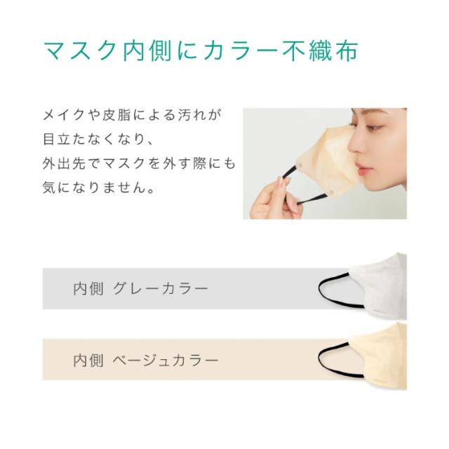 ●(内側カラー不織布)マスク内側をカラー不織布にすることでメイクや皮脂による汚れが目立ちにくい。