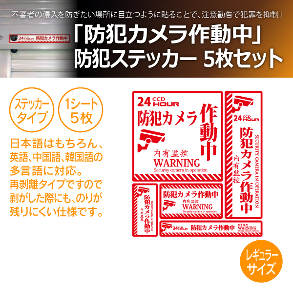 MTO 防犯ステッカー 5枚セット 「防犯カメラ作動中! 」 レギュラー サイズ 1シート SS-004(商品コード:710104)