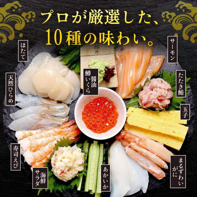 甲羅組のお手軽 海鮮 10種セット ほたて 帆立 天然 ひらめ ヒラメ かに 蟹 まるずわいがに マルズワイガニ サーモン ギフト 詰め合わせ プレゼント 海鮮丼 手巻き寿司 刺身