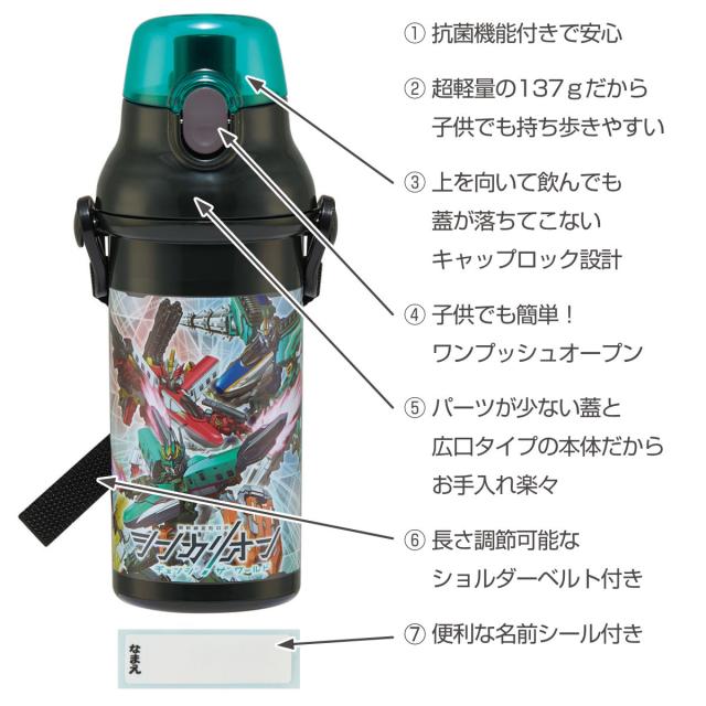 水筒 480ml 抗菌直飲プラボトル シンカリオンワールド ( 子供用 抗菌 プラスチック製 ダイレクトボトル 直飲み ワンタッチ 日本製 抗菌加工 AG 銀 ショルダーベルト付き 広口 軽量 ボトル ワンプッシュ )