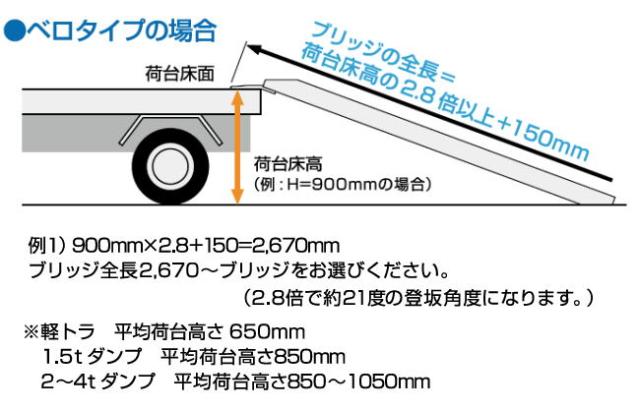 | ●小型・中型建機・農機用 ●鉄シュー、ゴムシュー兼用 ●軽量・安全・安価なアルミブリッジ ●耐荷重を記載し刻印プレート付 |