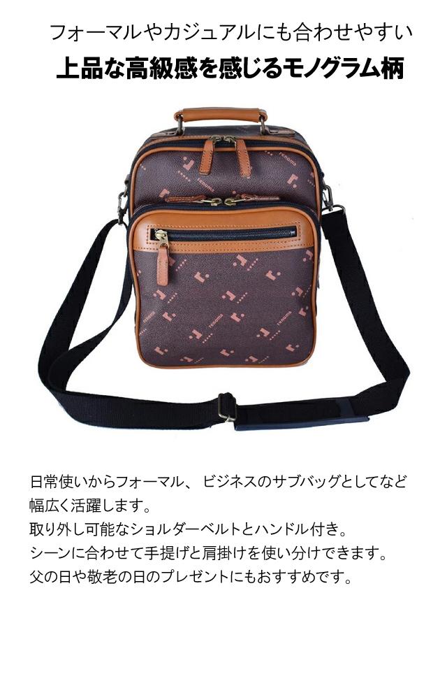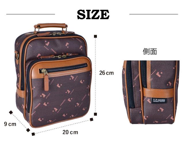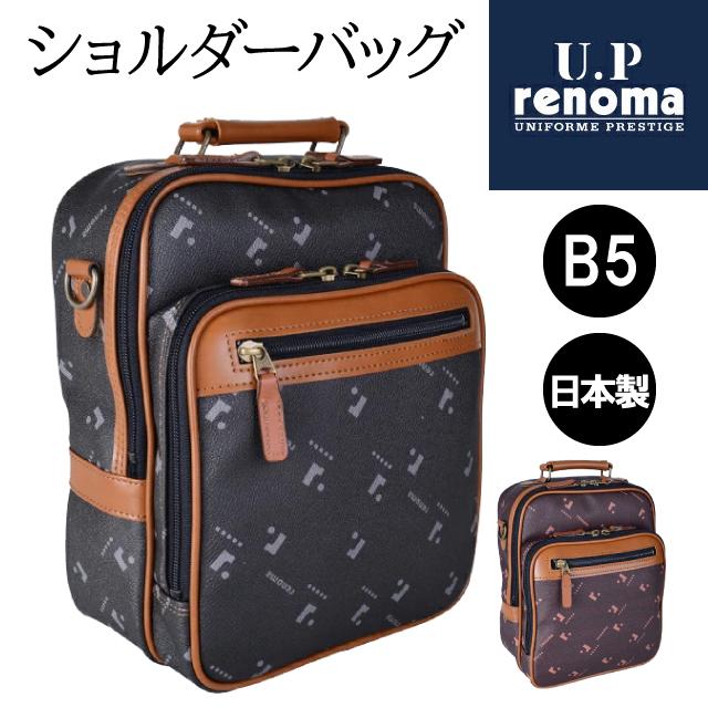 斜めがけバッグ メンズ U.P renoma レノマ モノグラム 縦型 ショルダーバッグ 日本製 豊岡製 20119 B5サイズ 斜めがけ 斜め掛けバッグ 合皮 バッグ ショルダーバック メンズバッグ パパ 父 祖父 ミニショルダー ショルダー 男性用 メンズバック 黒 茶色 旅行 父の日 敬老の日