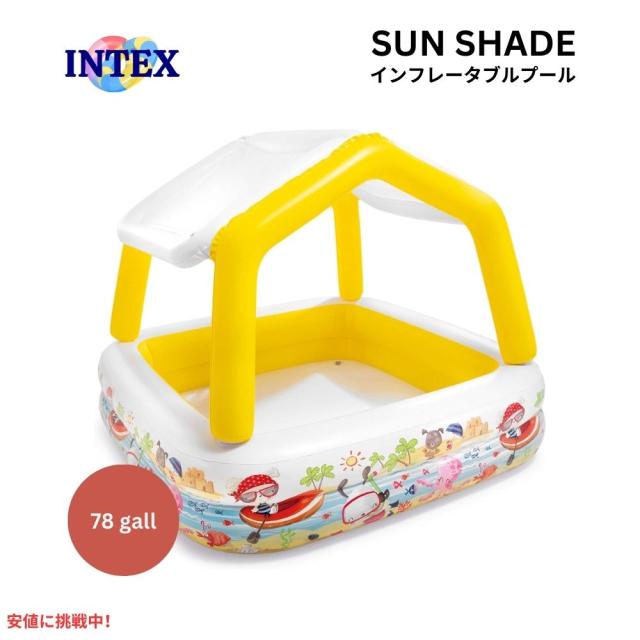 INTEX インテックス 子供用 屋根付き インフレタブル プール スクエア 5x5フィート 海辺の柄 キャノピー Sun Shade Inflatable Kiddie Pool