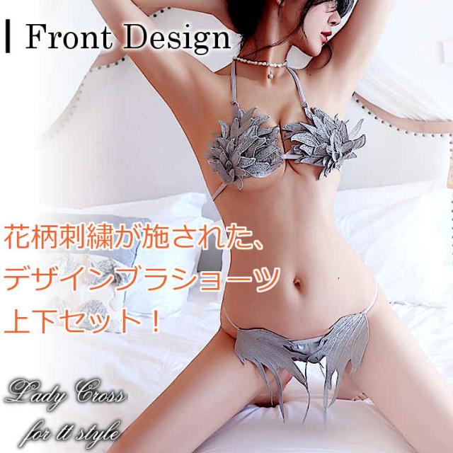 花柄を重ね合わせたセクシーブラ&ショーツ。