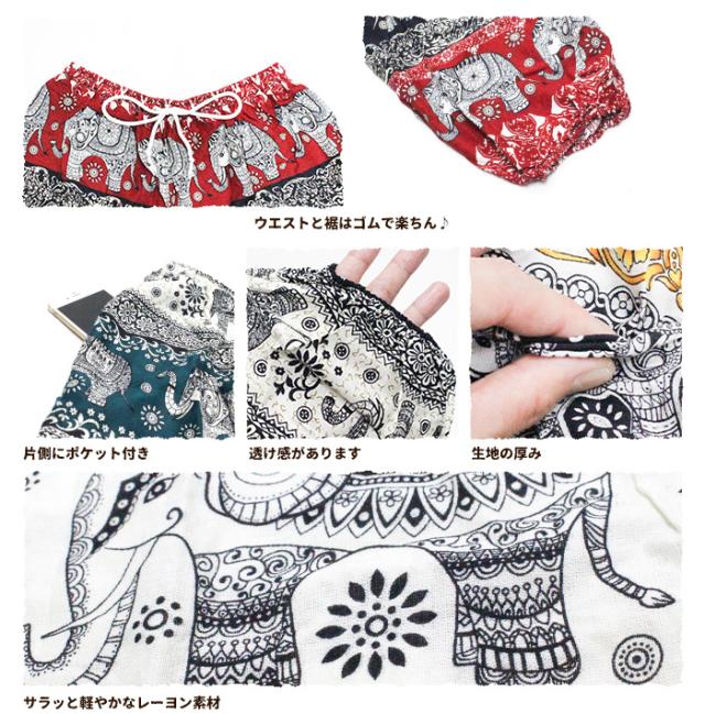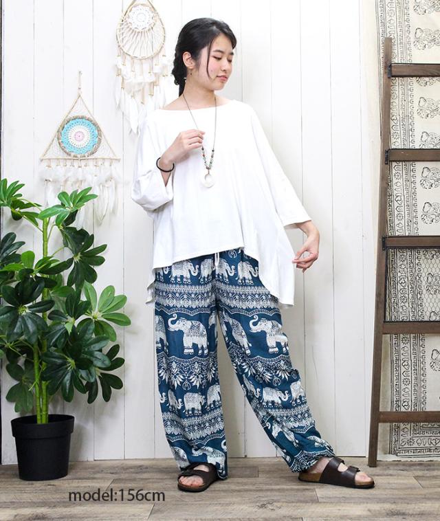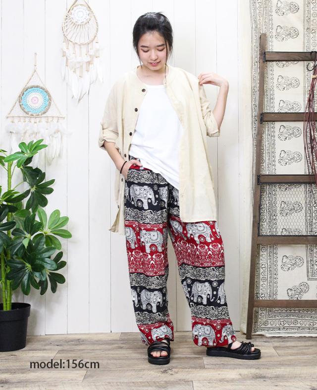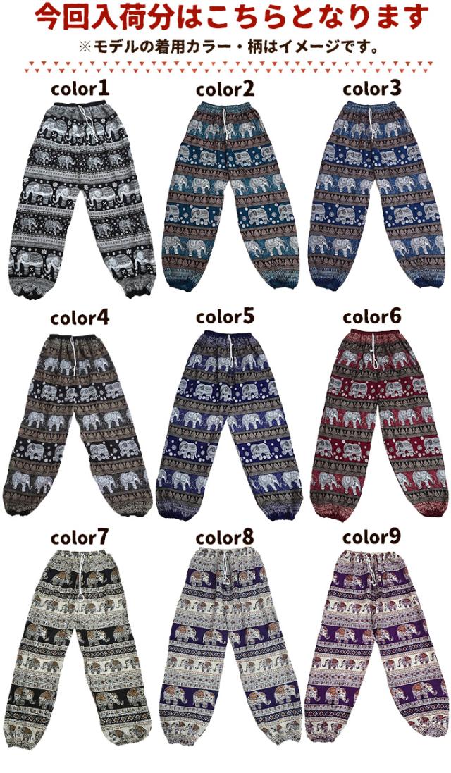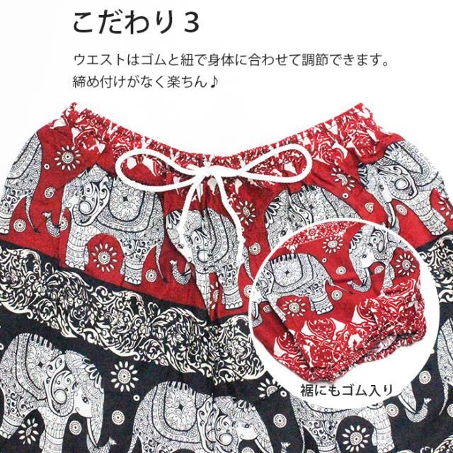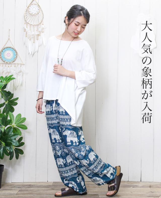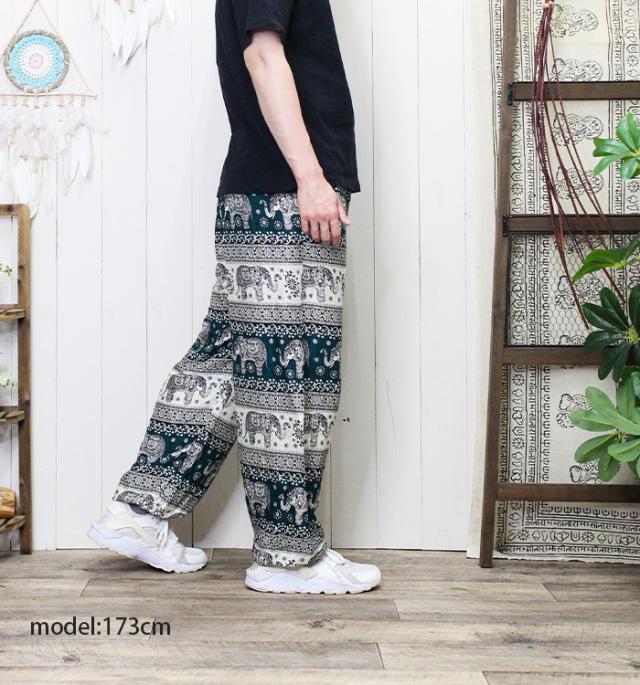 【メール便OK】 サルエル イージー エスニック アジアン ユニセックス !さらさらレーヨン象さん柄タイパンツ 2025年春夏