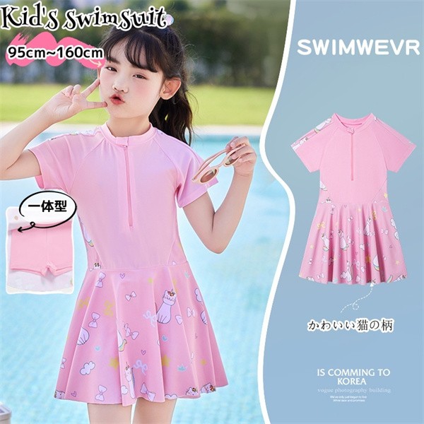 かわいい レインボーラビット 女児水着 アニメプリント 学生トレーニングウェアラウンドネック ワンピース水着
