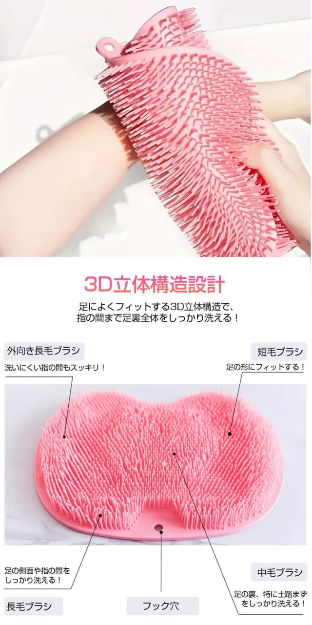 フットブラシ 3Dフットブラシ 優しい感触 極上の洗い心地 足を包み込む 2WAY 足洗い 足裏ブラシ 角質ケア 臭い防止 足裏マッサージ 箱なし リニューアル版 送料無料 zk1252