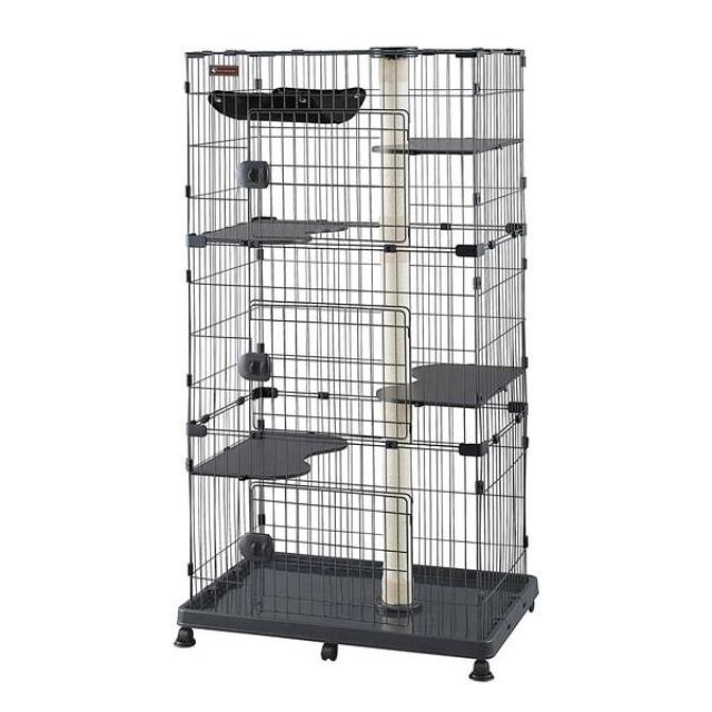 アイリスオーヤマ キャットランドケージ ワイド PCLC-903 ダークグレー 3段 猫用 スリムタイプ キャスター付 ハンモック付 【お客様組立】