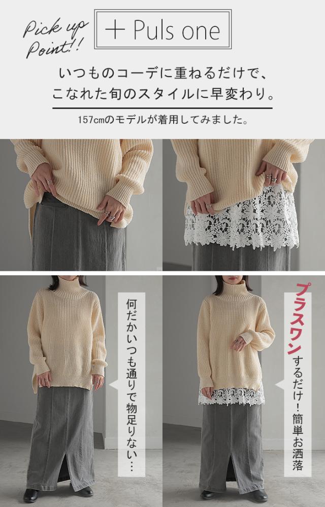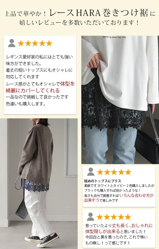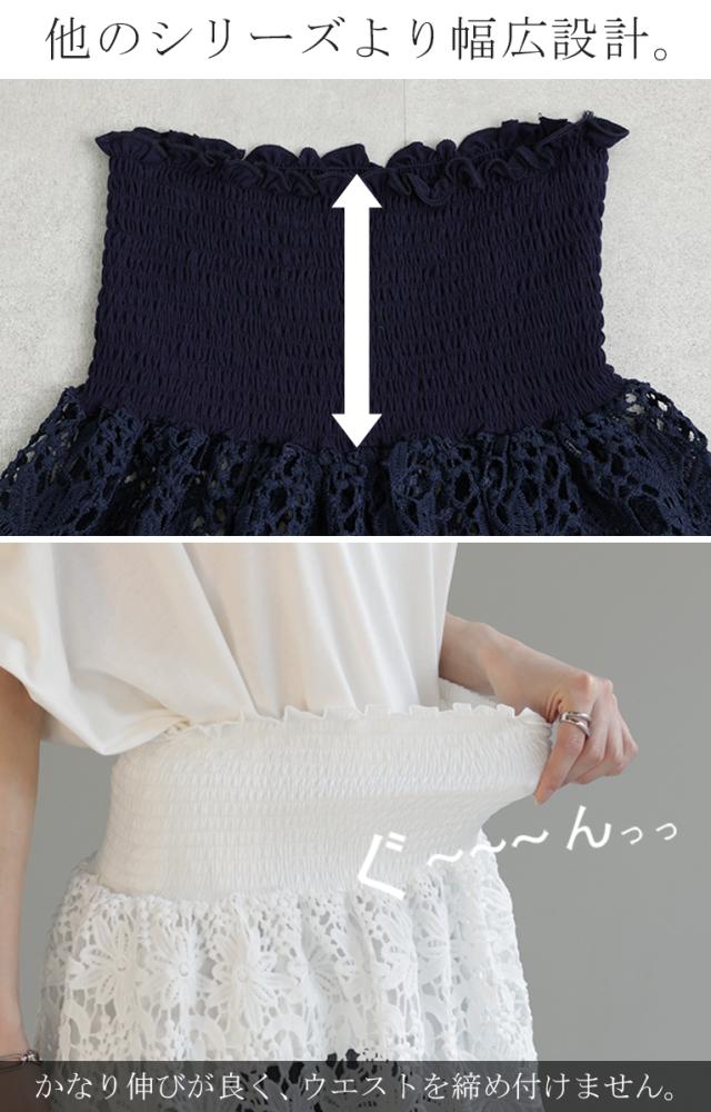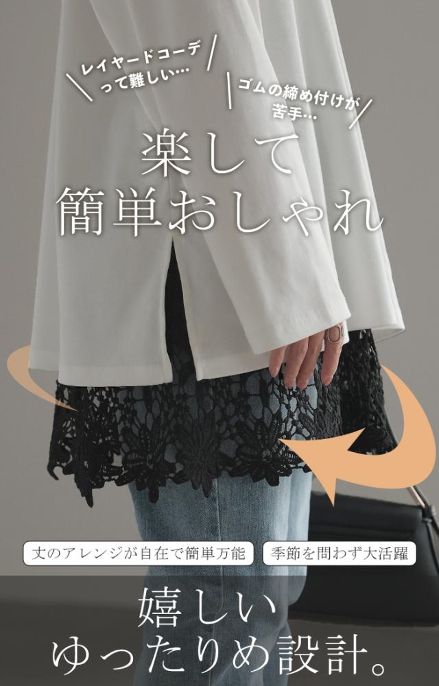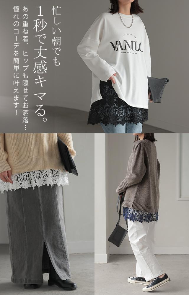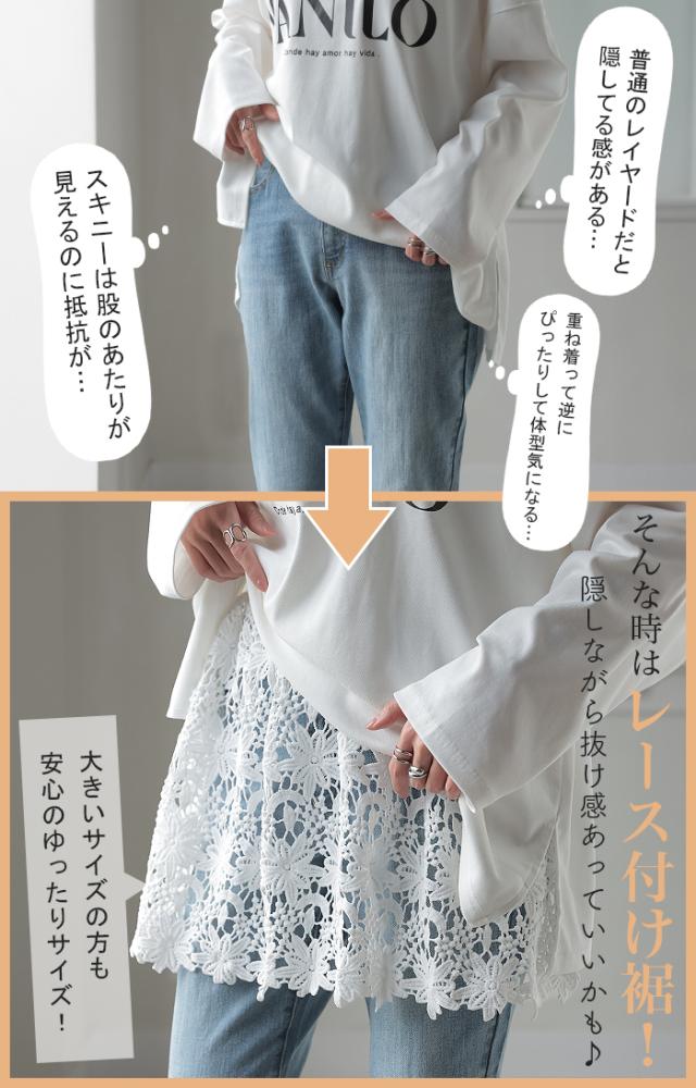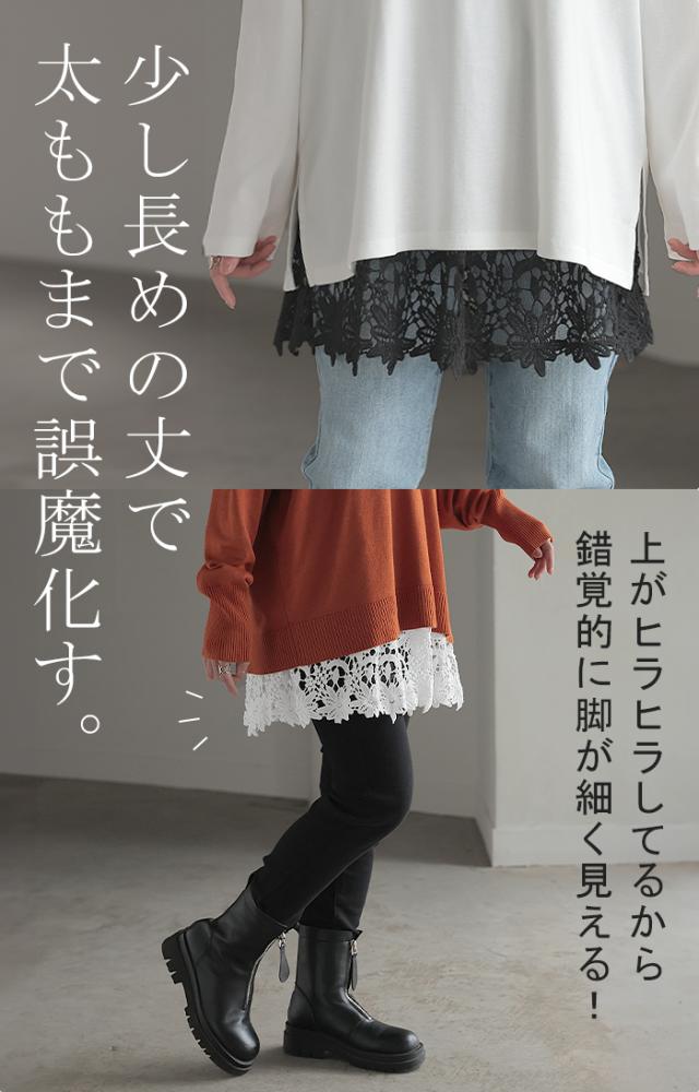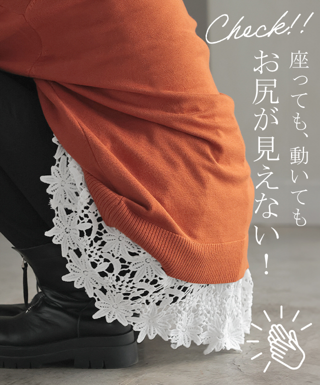 気になるお尻周りをカバーできるレースのつけ裾です。